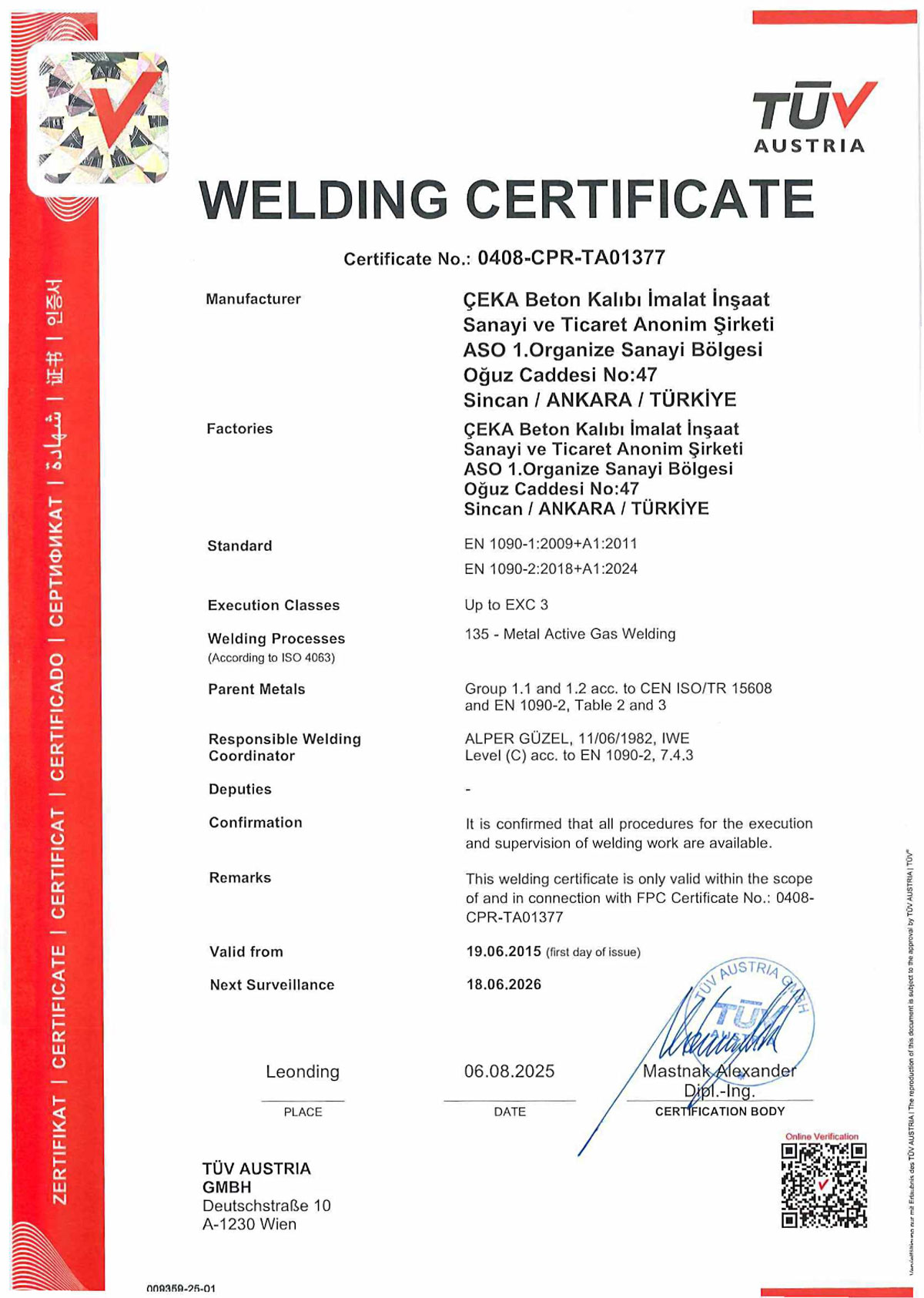 Our Certificates
